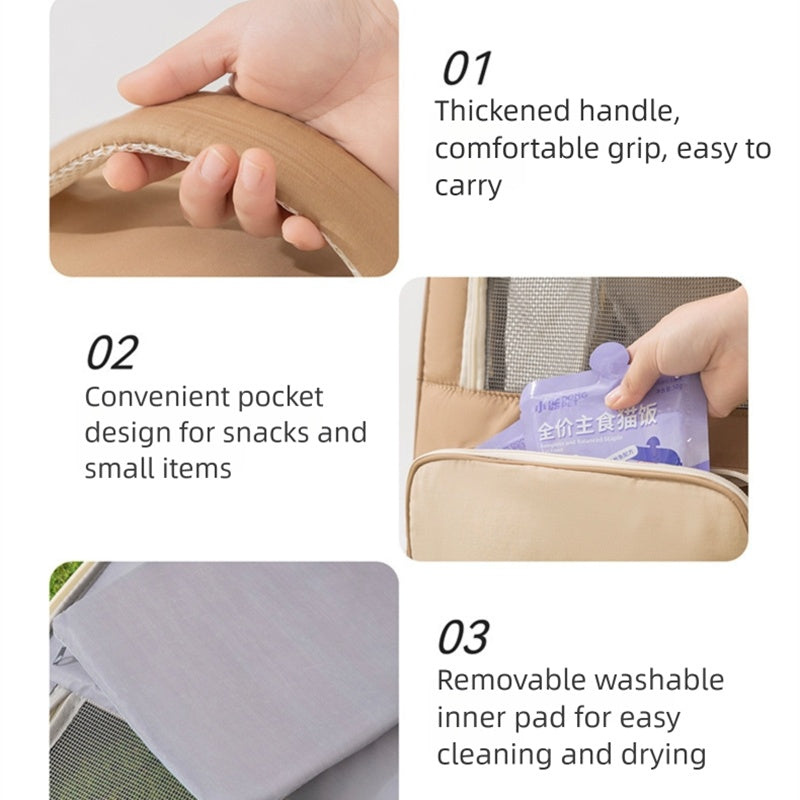 Make pet travel easy and stylish with the Hexipet Pet carrier Backpack! This backpack is designed with a breathable mesh window, ensuring visibility and ventilation. It keeps your cat or dog warm, comfortable and safe during your journey. Optional neutral tones (beige and gray-beige), it features a spacious main compartment, a necessary front pocket, and a durable structure. The ideal daily walk, trip or outdoor adventure makes it convenient and stylish for you and your pet to travel. One must find a functional, comfortable and fashionable way for pet parents to carry their furry companions!